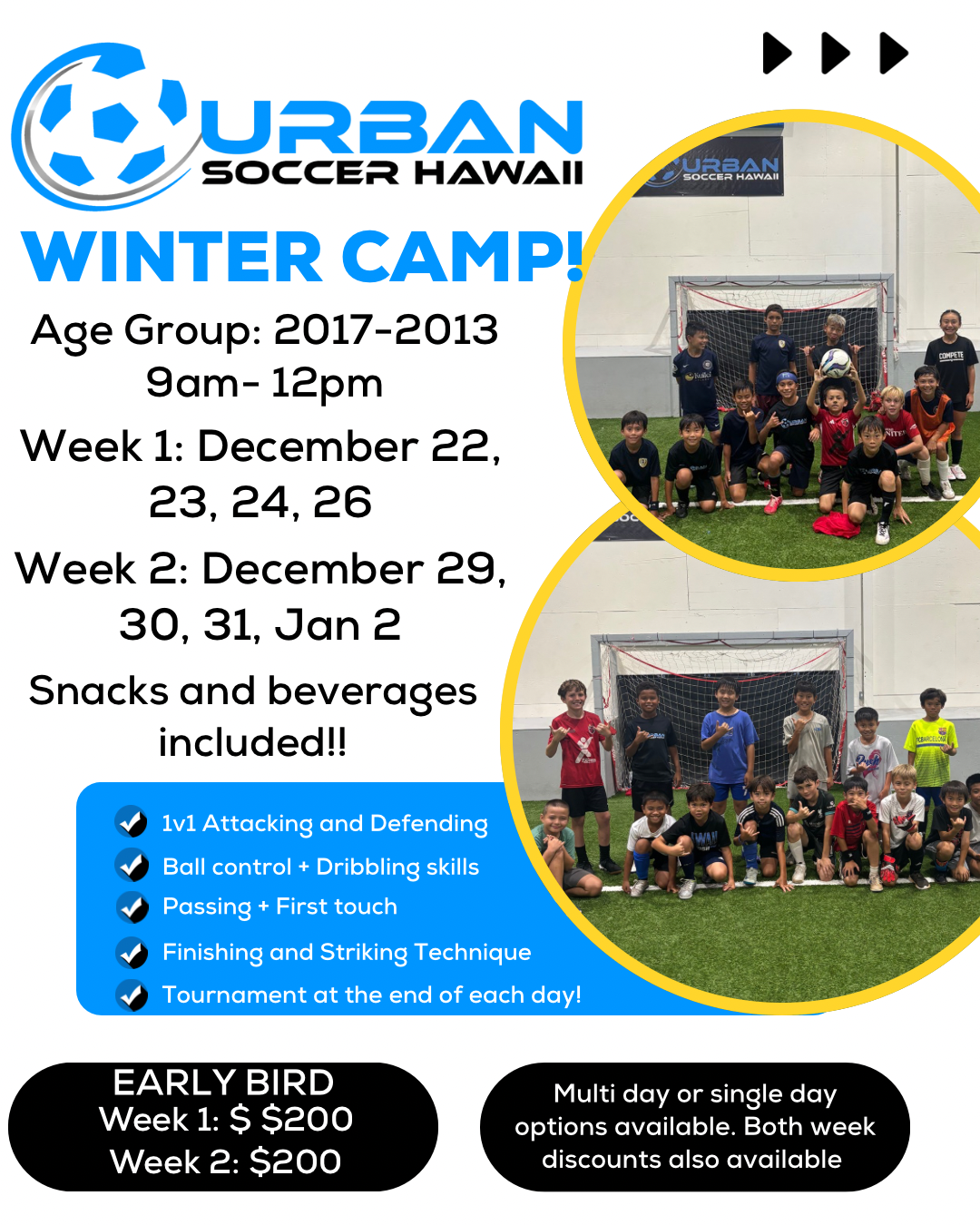 Email us at: Info@urbansoccerhawaii.com for pricing and availability!
